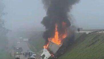 Acidente na Fernão Dias bloqueia totalmente o trânsito e mobiliza equipes de resgate