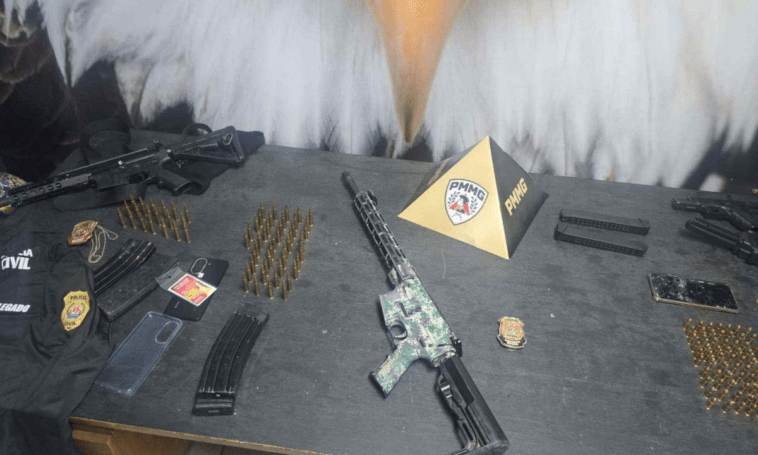 A polícia apreendeu dois fuzis, um deles com pintura semelhante à utilizada pelo Exército, além de uma pistola 9 mm. Um dos fuzis estava com o suspeito encontrado morto dentro do carro, e o outro foi apreendido com um homem detido enquanto tentava fugir por um beco. Ele foi identificado como integrante da facção rival.