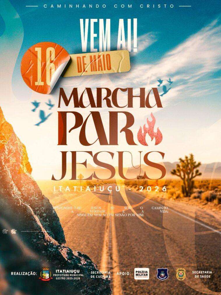 A Prefeitura de Itatiaiuçu realiza, no dia 16 de maio de 2026, mais uma edição da Marcha para Jesus, um dos eventos religiosos mais tradicionais do município, que reúne fiéis em um momento de fé, união e celebração.